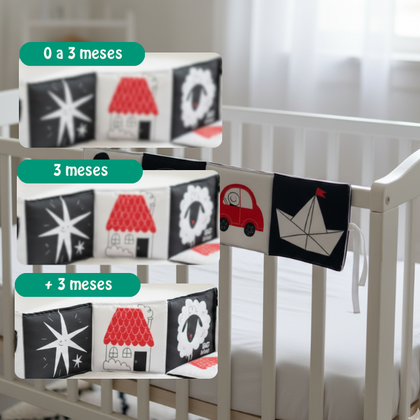 Estimulación visual: Los bebés recién nacidos no pueden ver colores con claridad, por lo que los contrastes fuertes ayudan a captar su atención y les permiten empezar a distinguir formas y patrones más fácilmente.