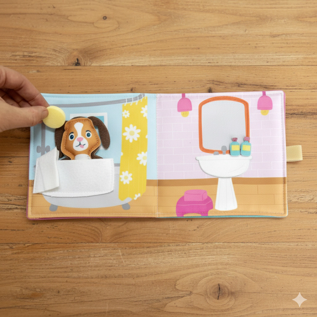 Mi CASITA BAÑO incluye una esponjita, toalla, peine, shampoo y crema de enjuague