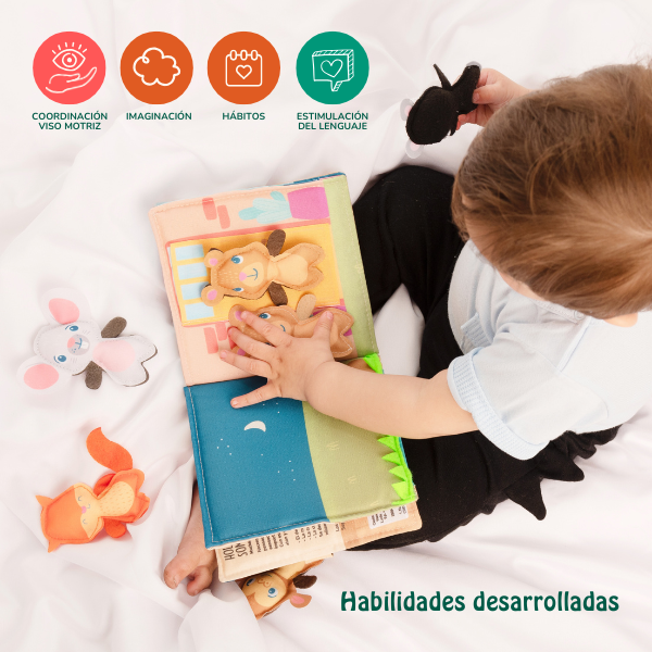 - A través de historias, canciones o palabras asociadas a las imágenes, los libros sensoriales potencian la comprensión del lenguaje y el vocabulario.