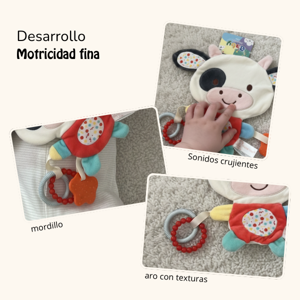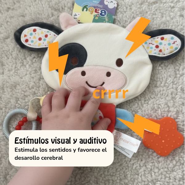 Incluye mordillo, ideal para aliviar las molestias de la dentición y acompañar la exploración oral, una etapa clave del desarrollo temprano.
