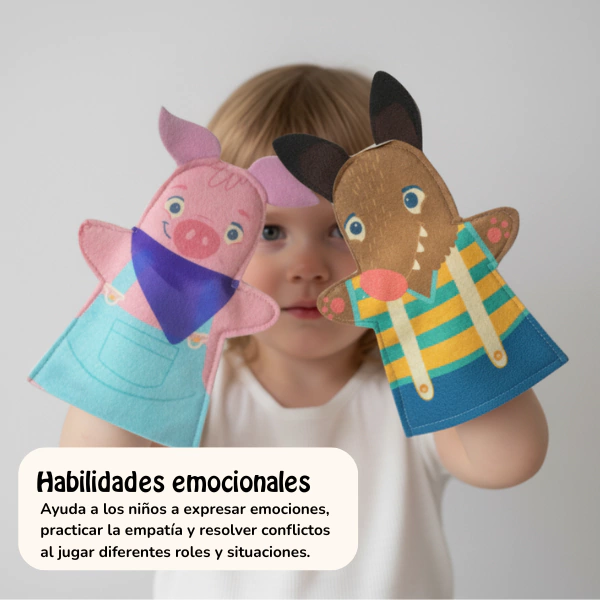 Habilidades sociales: Jugar con títeres implica interacción, ya sea con otros niños o adultos. Esto fomenta el desarrollo de habilidades de colaboración, turnos para hablar y resolver conflictos.