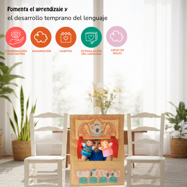 Desarrollo del lenguaje y la comunicación: Los niños y niñas que juegan con títeres tienden a expresar sus pensamientos y emociones de manera más abierta. Les ayuda a practicar vocabulario, mejorar su pronunciación y desarrollar habilidades narrativas.