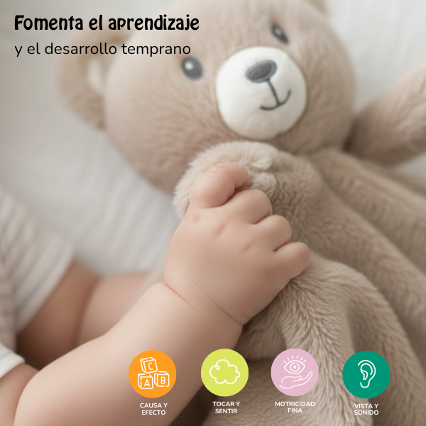 Gracias a su suavidad y tamaño, se convierte en un objeto de apego, brindando contención emocional, seguridad y calma tanto en momentos de juego como de descanso.